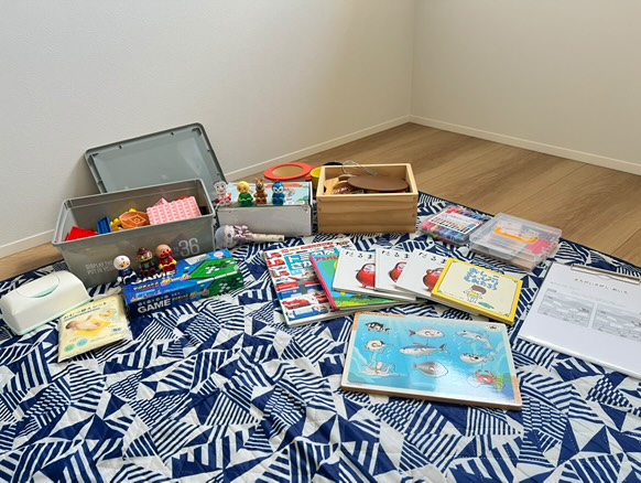 完成見学会のおもちゃ、張り切って選びました✌️
