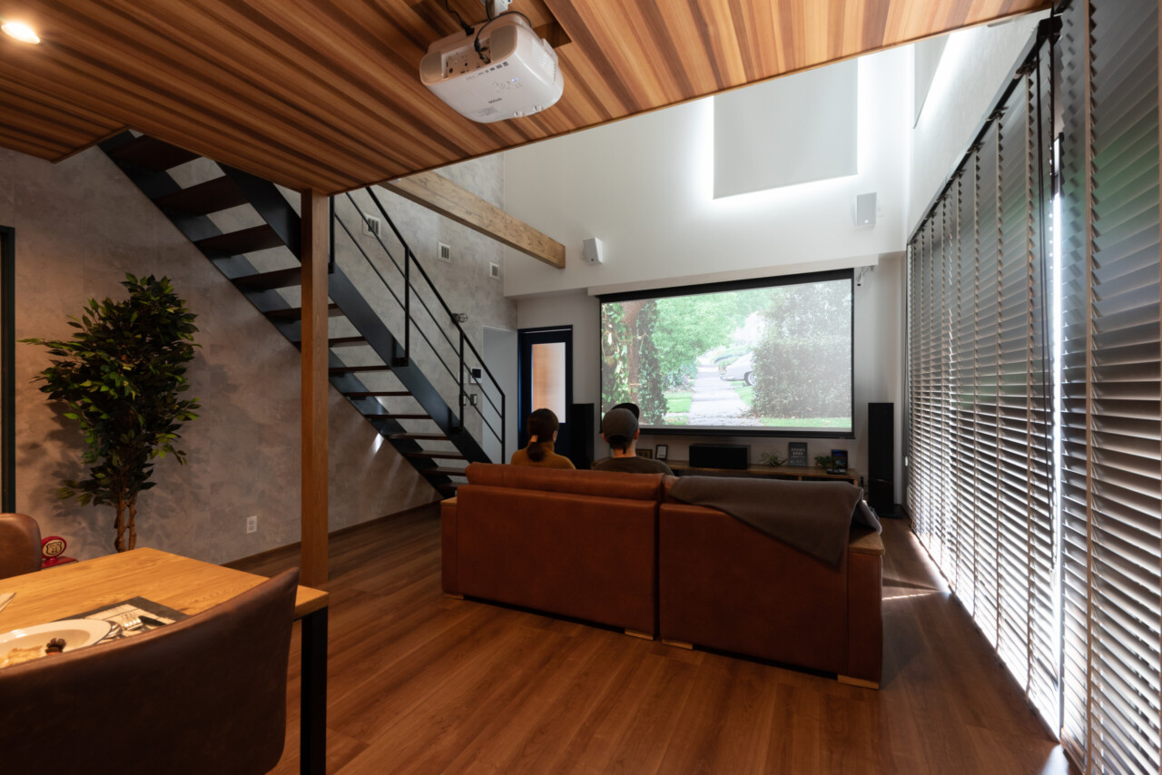 映画を楽しむシンプルカフェスタイルの家