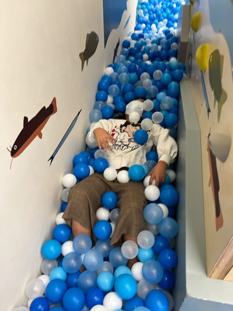 (※👆キッズピアにて埋もれたがる私の妹です。)