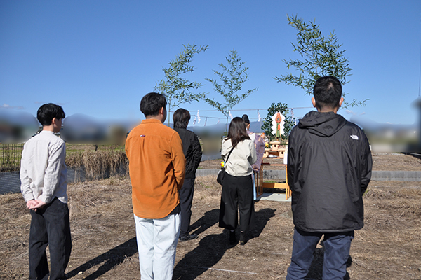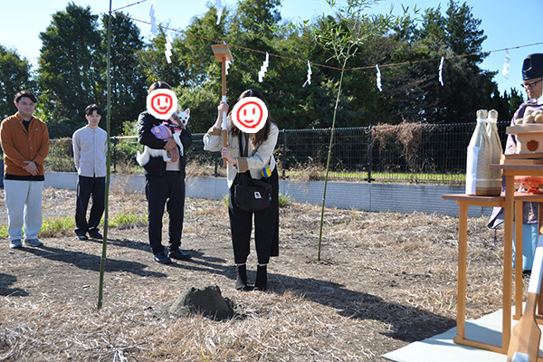 穏やかな空の下、ご家族とわんちゃんの笑顔があふれる地鎮祭となりました。