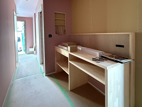 木工事完了後なので造作の家具なども設置され